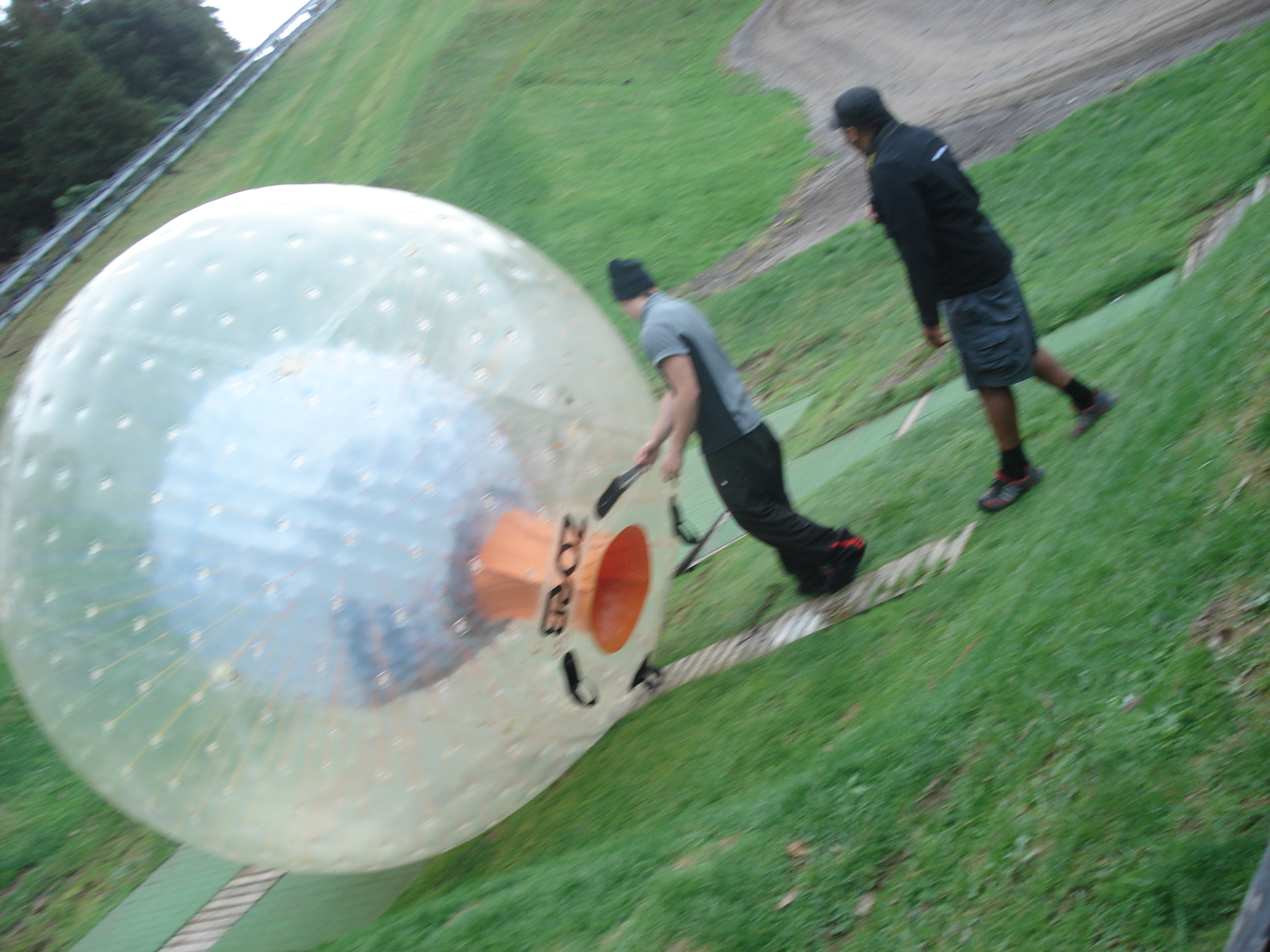 This is zorbing. It’s an action sport where you are in a giant plastic ball filled with water. It originated in New Zealand and it’s in a few states here.